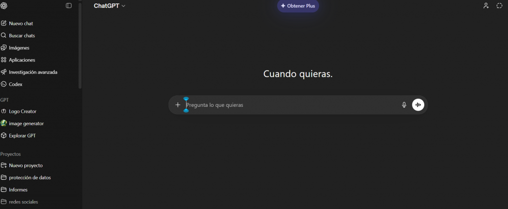 Dentro de ChatGPT, pulsa el botón “+” y selecciona: